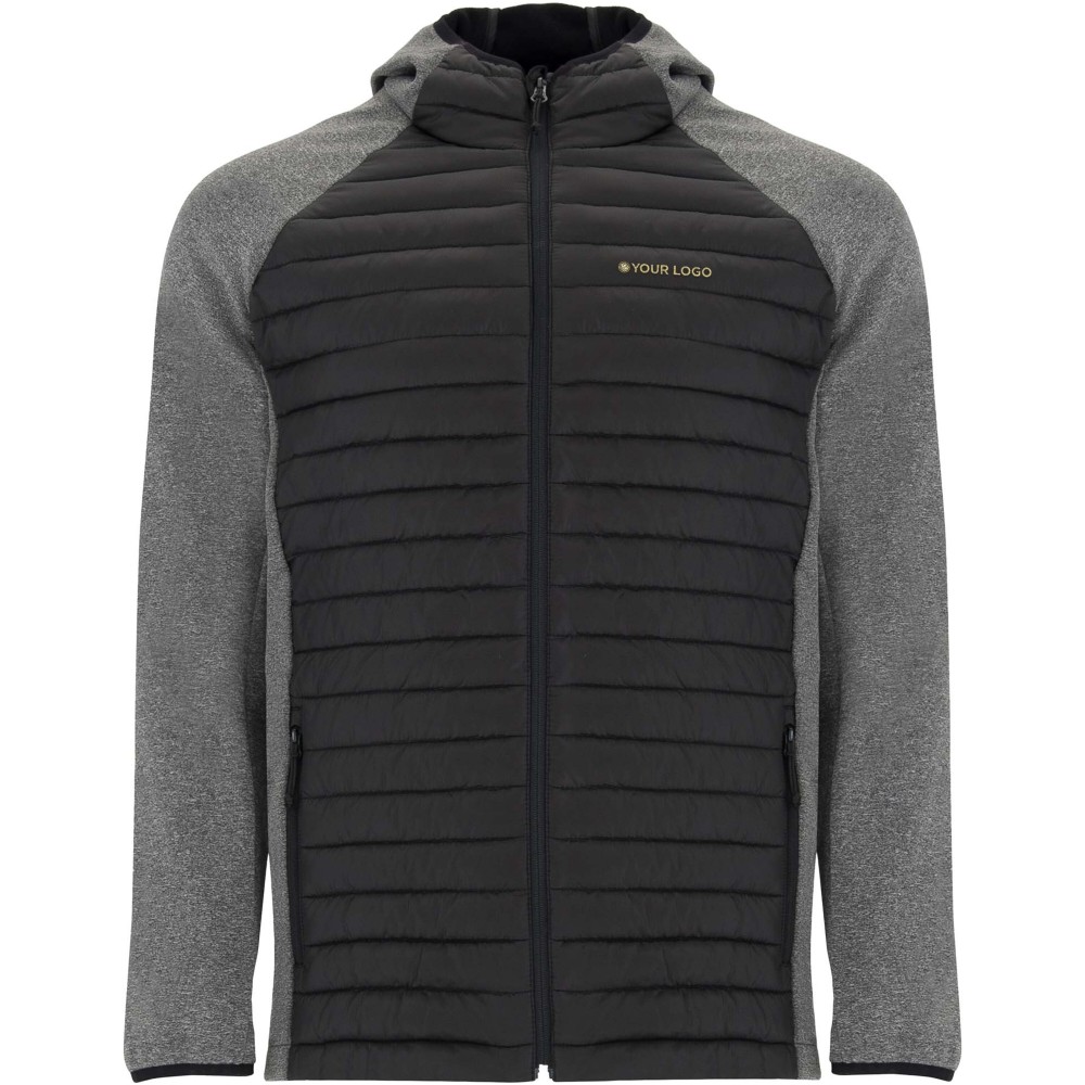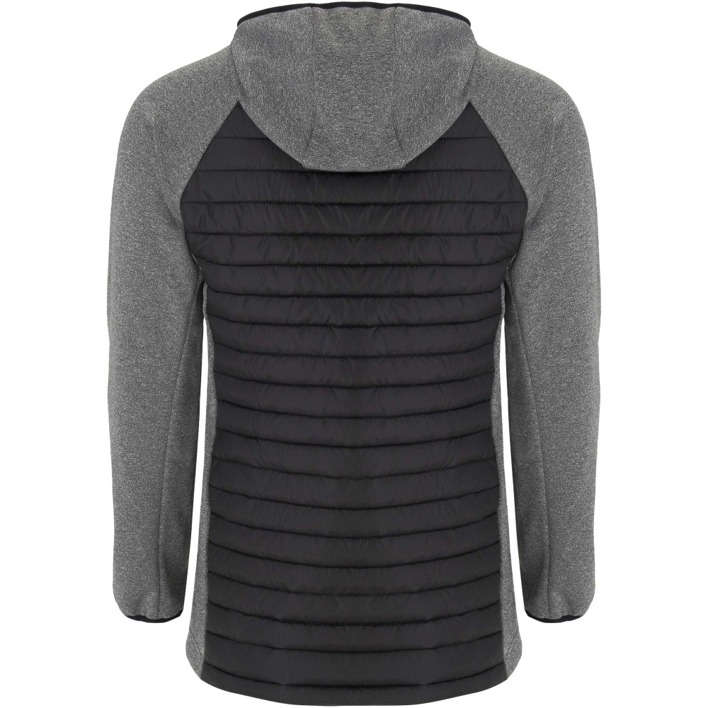 Uniszex dzseki két anyag kombinációja. Fix kapucni. Raglán ujjak. Softshell anyagból készült ujjak, oldalsó panelek és kapucni. Steppelt, pehelytapintású szövet elöl és hátul. Fordított cipzár, színben illeszkedő állvédő és cipzár. Két cipzáras elülső zseb. Gumis szegély a galléron, a kézelőn és a aljon. Szélálló modell. 100% poliészterből szőtt, kontrasztos anyag, interlock kötés 100% poliészterből. Töltet: műpehely, 100% poliészterből.
