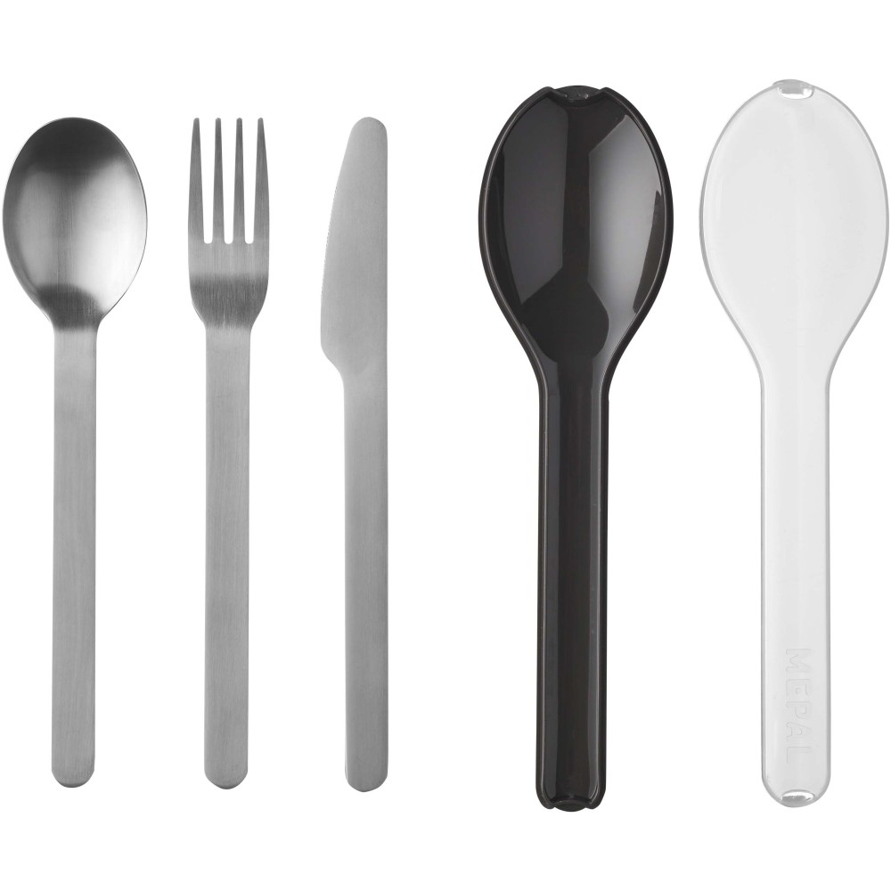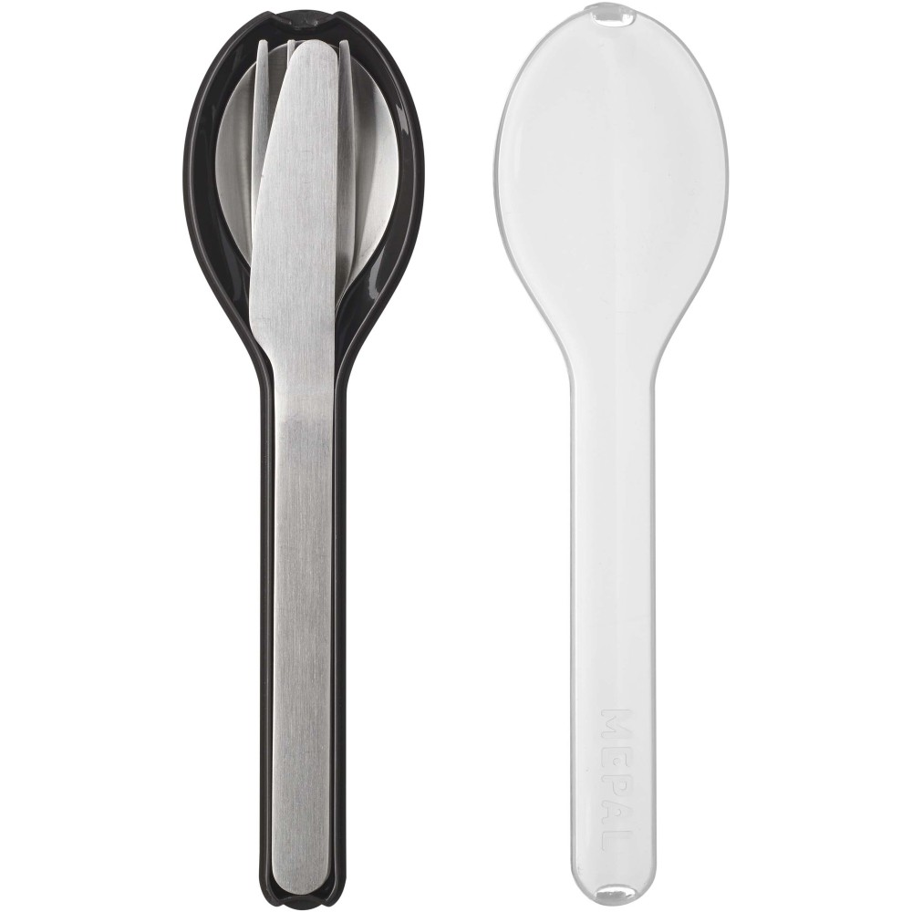 Ez az elegáns és praktikus Ellipse evőeszközkészlet egy kést, egy villát és egy kanalat tartalmaz, mindegyik rozsdamentes acélból készült. Az evőeszközök egy kompakt műanyag tartóban vannak. Mosogatógépben mosogatható.