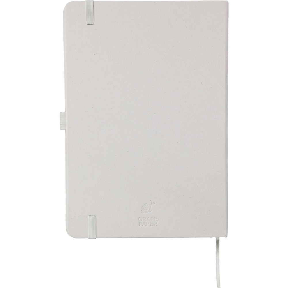 Újrahasznosított biohulladékból és kartonból készült A5-ös jegyzetfüzet 80 vonalas lappal, szójatintával nyomtatva. Minden füzet hátoldalán a hivatkozott alapanyag színének megfelelő dombornyomás található: zöld a citrusfélék, piros a cseresznye, kék a levendula, natúr a szőlő és a barna a mandula alapanyagra utal. A jegyzetfüzet olasz Favini papírral van bevonva.