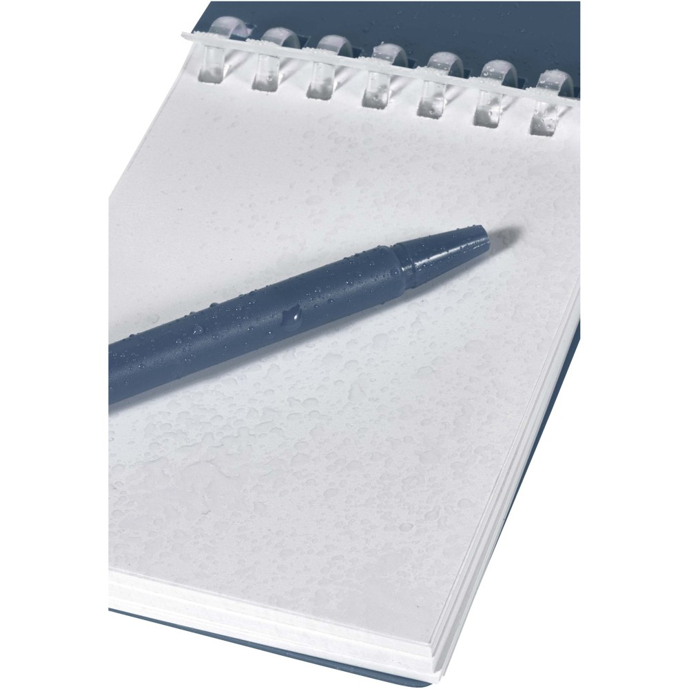 A Lig Mini jegyzetfüzet és toll szett kompakt és praktikus társ a gyors jegyzeteléshez útközben. A spirálfüzet puha, újrahasznosított műanyag borítással és 70 darab, 120 g/m2 súlyú, vízálló kőpapírból készült üres lappal rendelkezik, így ideális választás szabadtéri használatra is. A kerekített sarkokkal és beépített tolltartó pánttal ellátott kiegészítő tökéletesen követi a "mini" trendet, miközben teljesen funkcionális marad. A szetthez tartozó golyóstoll újrahasznosított ABS műanyagból készült, fekete tintával ír, íráshossza pedig 250 méter. A színben harmonizáló fémgyűrű segítségével a szett könnyen rögzíthető hátizsákra, táskára vagy kulcscsomóra, így tartós és hordozható megoldást nyújt a jegyzetek rögzítéséhez. A jegyzetfüzet mérete: 11 × 7,5 cm.