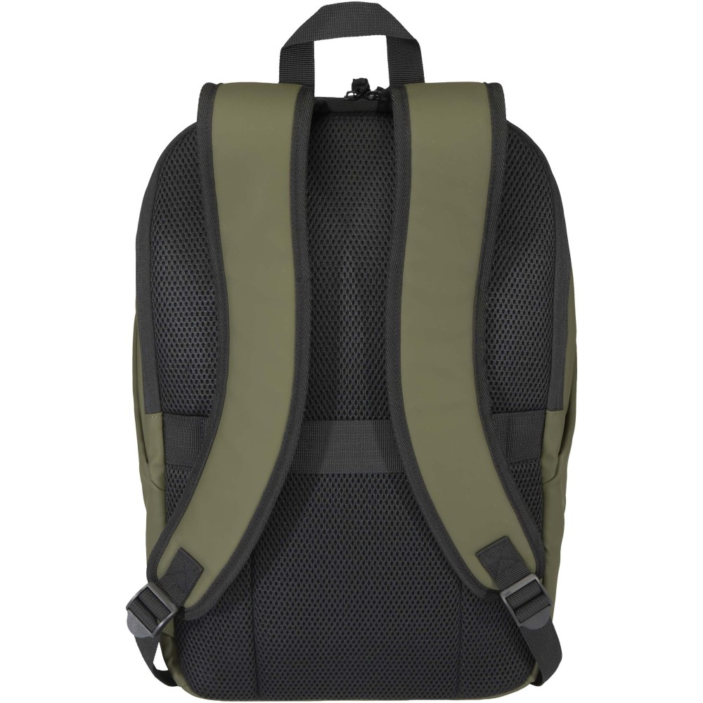 A prémium minőségű, GRS tanúsítvánnyal rendelkező újrahasznosított PU bőrből készült, színben passzoló RPET béléssel ellátott 15?-os biztonsági hátizsák garantálja az értékek védelmét és szárazon tartását útközben. A termék hátulról hozzáférhető laptoprekeszel, két letisztult oldalsó zsebbel, valamint egy vízálló cipzárral felszerelt elülső zsebbel rendelkezik. A légáteresztő hátlap biztosítja az egész napos kényelmet, így ideális választás ingázáshoz, utazáshoz vagy városi használatra. Űrtartalma: 18 liter.