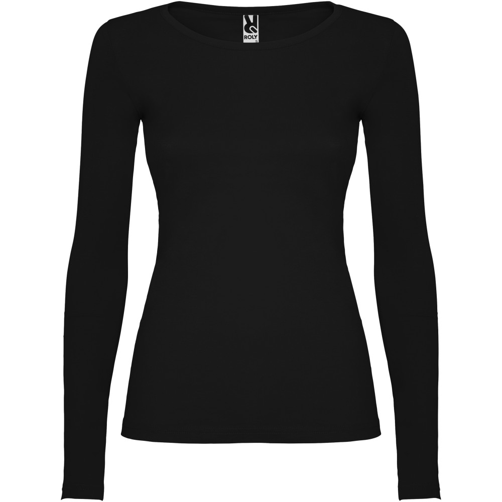 Hosszúujjú, oldalvarott, enyhén karcsúsított női póló 4 rétegű, kerek, keskeny nyakkal. Nincs ujj- és aljpasszé. Megerősített nyaki varrások. A férfi modell körkötött, a gyermek és női modell oldalvarrott. Szürke szín: 85% pamut és 15% viszkóz, 160 g/m2. Egyéb színek: 100% pamut, 160 g/m2.