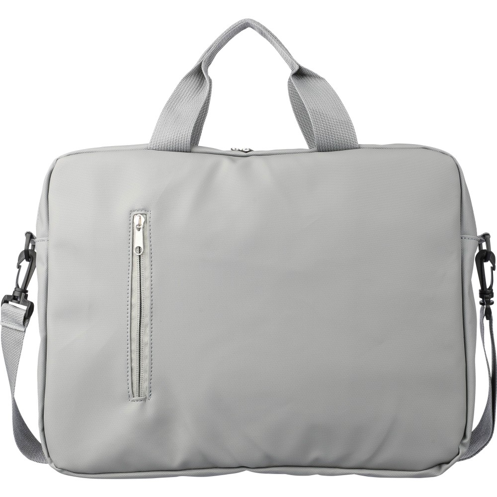 Laptoptáska 15 -es laptophoz PU anyagból, két cipzáras első zsebbel, egy nagy cipzáras rekesszel és tépőzáras laptop résszel, valamint több belső zsebbel. Állítható vállpántokkal és két fogantyúval rendelkezik. Vízlepergető. Anyaga: PU.