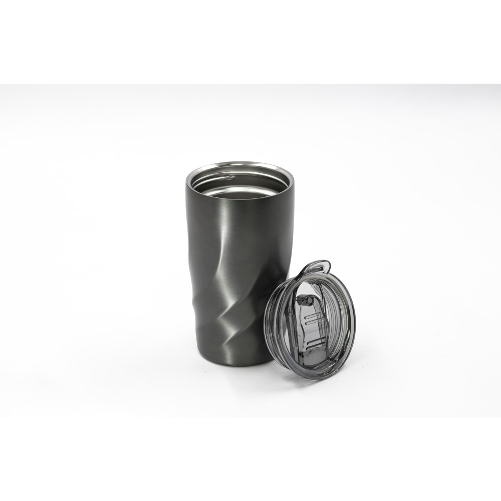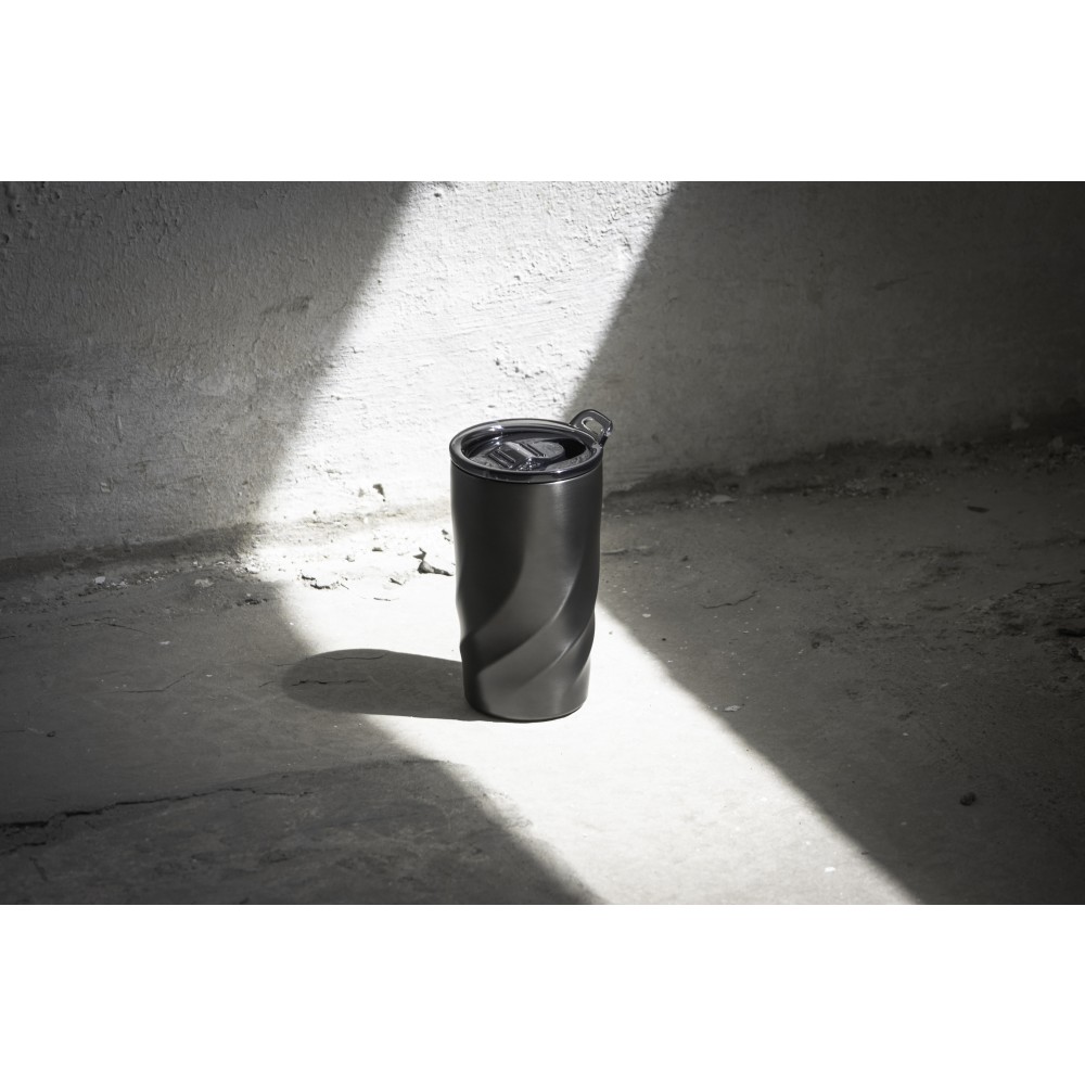 A Vortex Calix utazóbögre ötvözi a luxust és a fenntarthatóságot, újrahasznosított 304 rozsdamentes acélból készült, a környezettudatos stílus megnyilvánulásaként. A csavaros, szivárgásmentes fedéllel ellátott bögrét úgy tervezték, hogy könnyedén kezelje a habzó italokat, a kupak pedig egy hordozóhurokkal rendelkezik, amelyhez opcionális vállpánt csatlakoztatható, így kényelmes, kéz nélküli opciót jelent. A Coppertech duplafalú szigeteléssel ez a 400 ml-es pohár akár 12 órán át hidegen, vagy 4 órán át melegen tartja az italokat. A tartós és mosogatógépben mosható Vortex Calix egyszerre kínál funkcionalitást és tartós hőmérséklet-szabályozást az italok számára.