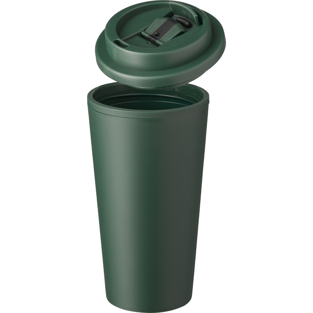 Kávéspohár csavaros fedéllel és felpattintható ivórésszel. Űrtartalom: 475 ml. PP műanyag.