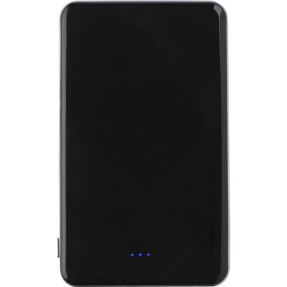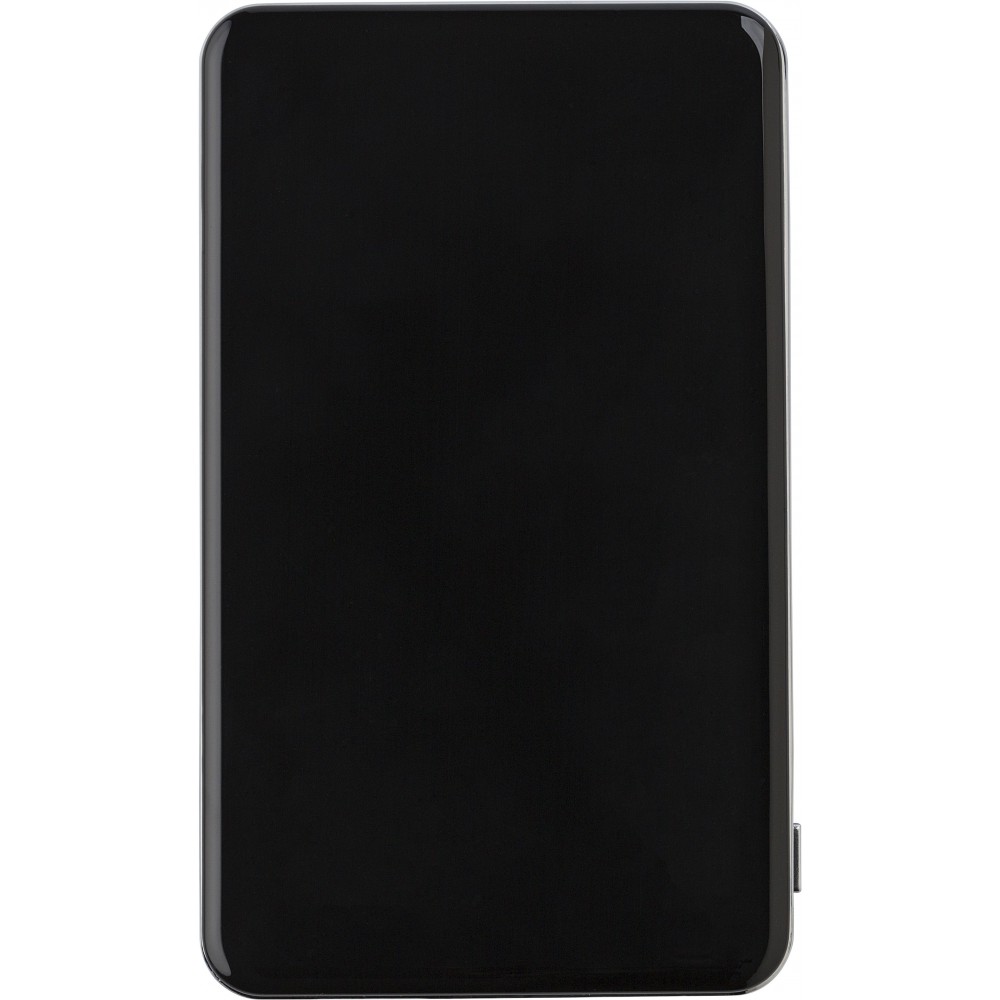 Li-polimer tartalék akkumulátor 5000mAh kapacitással. Bemenet 5V/1A, kimenet 5V/1A/2.1A. Elő- és hátlapja is fényes felületű, ezüst színű oldalpanelekkel. 5 LED fény jelzi a töltöttségi szintet. A 32 cm-es USB / mikro USB csatlakozós vezetéket tartalmazza. A legtöbb elektronikai eszközzel kompatibilis. ABS műanyag. Veszélyes áru, csomagban nem küldhető.