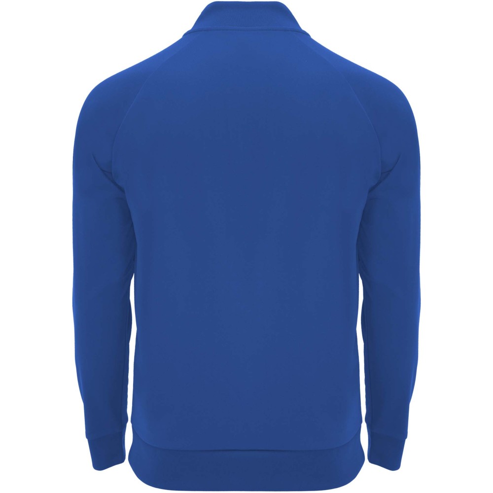 Technikai anyag. Raglán ujjak. Belül bolyhos anyag. Negyedcipzár azonos színű megerősített, fedett öltésekkel. Bordázott nyak-, ujj- és aljpasszé. Eltávolítható címke.