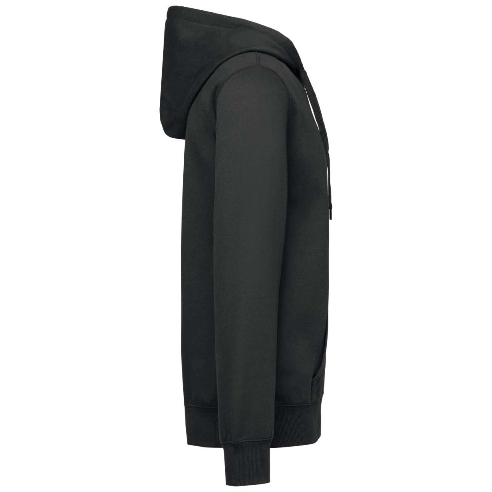 50% gyűrűs fonású pamut / 50% újrahasznosított poliészter, fésült pamut. Egyenes szabású, vágott és varrott. 1x1 bordás kötés a nyakkivágás, a mandzsetta és az alsó szegély jobb megjelenése érdekében. Kenguruzseb. Policotton dzsörzé bélésű kapucni lapos húzózsinórral. Színben illeszkedő dzsörzé szalagos belső a nyakkivágásnál. Csak méretcímke márkajelzés nélkül. 280 g/m2