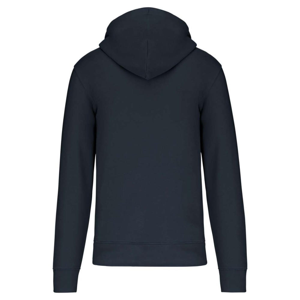 85% organikus pamut, 15% újrahasznosított poliészter. Alacsony zsugorodású anyag, 3-szálas szálcsiszolt pamut. Fésűs pamut, enzimmel mosott, egyenes szabású. 1x1-es bordás nyakpasszé. Kenguruzseb, 180 g-os 10% pamutbélésű kapucni. Színben illeszkedő dzsörzé nyakrész és félhold alakú eldolgozás a nyakrész belsejénél. Duplaöltéses szegés a nyakrészen, ahol nincs márkajelzés, csak méretjelölés a könnyebb egyediesítés érdekében.