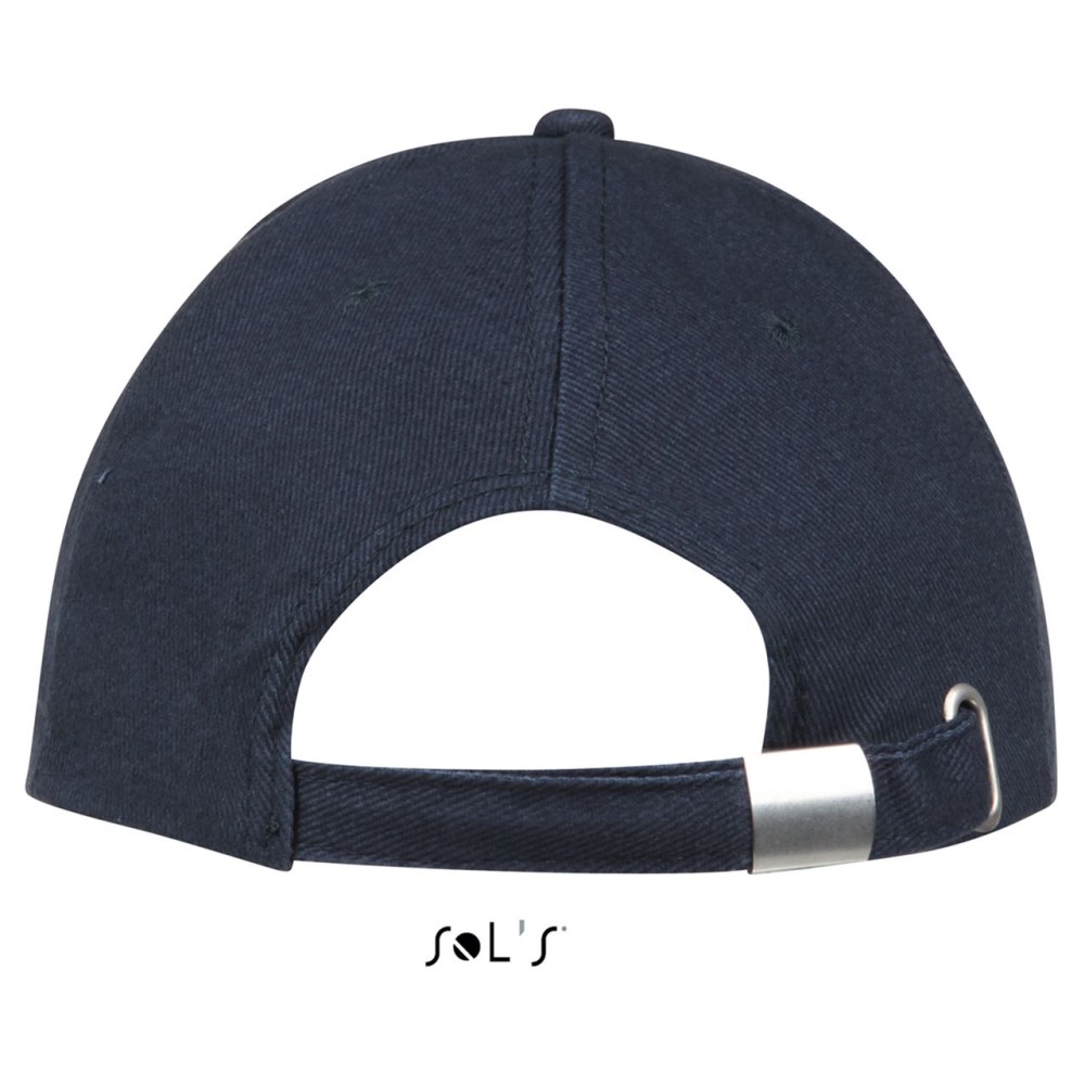 100% pamut vastag anyag, 260 g/m2. Formázott simléder, szellőzőnyílások, fém csattal fejméretre állítható.