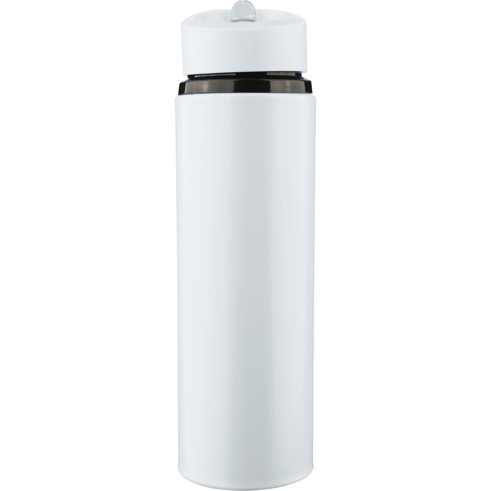 Újrahasznosított rozsdamentes acélból készült, egyfalú ivópalack rozsdamentes acél 304 anyagból, PP csavaros kupakkal, hordozófüllel, felhajtható ivószárral és belső szívószállal. Kizárólag hideg italokhoz használható, űrtartalma 500 ml. A palacktesten gravírozott recycled (újrahasznosított) alapanyagra utaló logó található. Darabonként barna kartondobozba csomagolva.