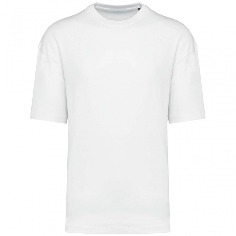 100% pamut; Kártolt pamut, jersey szövet; Oversize szabás ejtett vállakkal; Vágott és varrott; 1x1-es bordás nyakkivágás szimpla átöltéssel, szimpla öltés a mandzsettákon és az aljon; Márkacímke nélkül, csak méretcímke található a galléron a könnyű emblémázhatóság érdekében. 220 g/m2