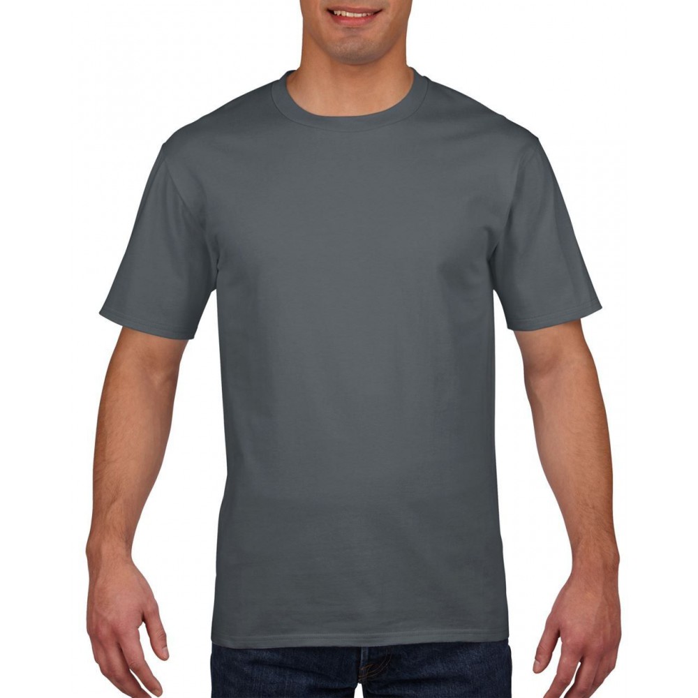 100% pamut, előmosott, egyfalas prémium kelme. Válltól vállig szalagerősítés, duplaöltéses ujj- és aljszegés, 2,24 cm széles nyakpasszé. 185 g/m2 (a fehér 180 g/m2). A Sport Grey szín összetétele 90% pamut és 10% poliészter. S-2XL.