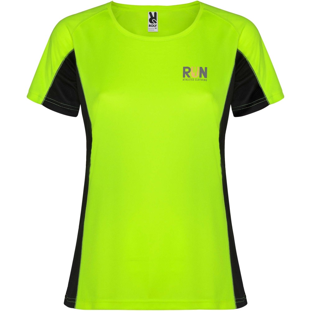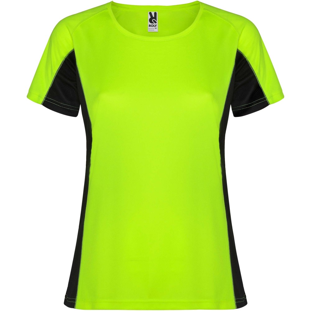 Roly Shanghai rövid ujjú női sportpóló, fluor green, solid black