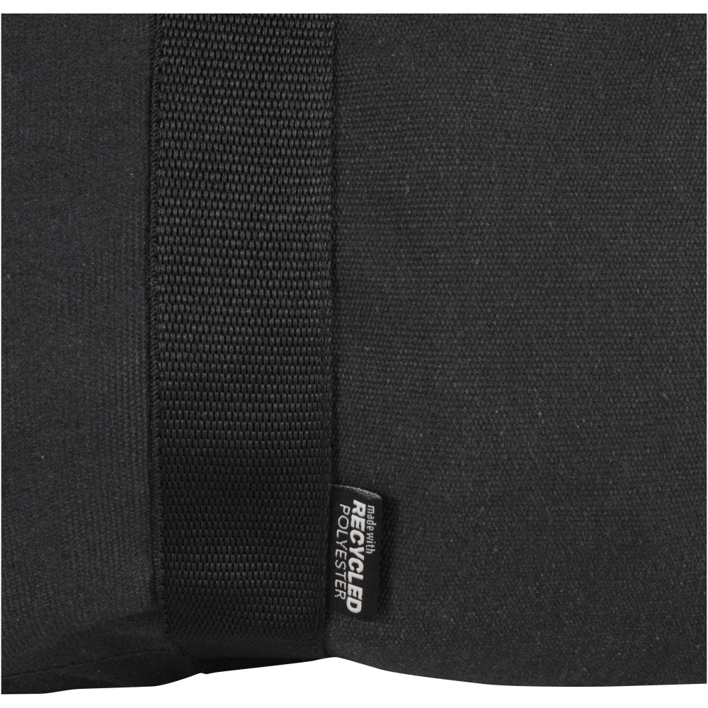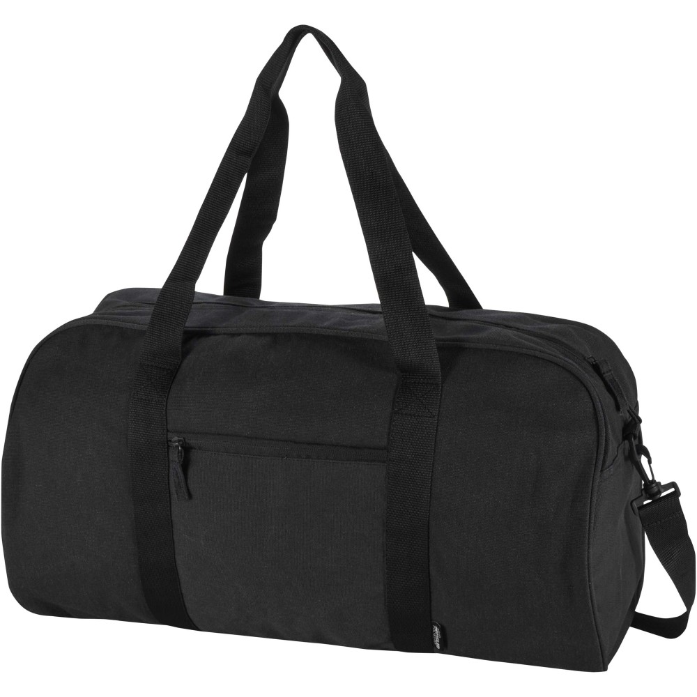 A Recanvas sporttáska GRS tanúsítvánnyal rendelkező, újrahasznosított és vízlepergető vászonból készült. A 40 literes űrtartalmú táska tágas főrekesze mellett egy cipzáras elülső zsebbel rendelkezik a gyorsan elérhető tárgyak számára, a kényelmes használatot pedig puha hordfülek, valamint a rugalmas hordozási opciókat biztosító lecsatolható és állítható vállpántok segítik. Kialakítása révén tökéletes választás edzőtermi használatra, hétvégi utazásokhoz vagy napi igénybevételre.