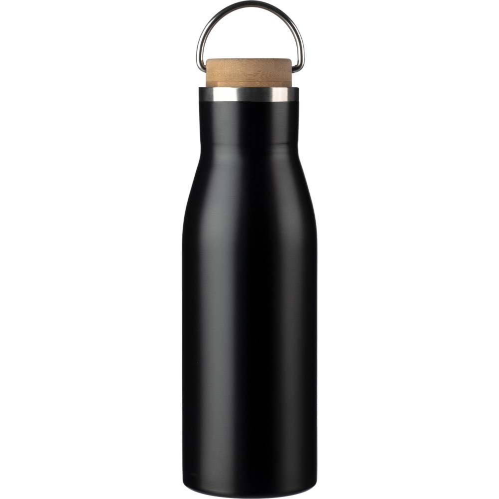 Újrahasznosított rozsdamentes acél palack bambusz kupakkal. Rozsdamentes acél 304 belül és 201 kívül. A palackon újrahasznosítást jelölő logó található. Űrtartalom: 500 ml.
